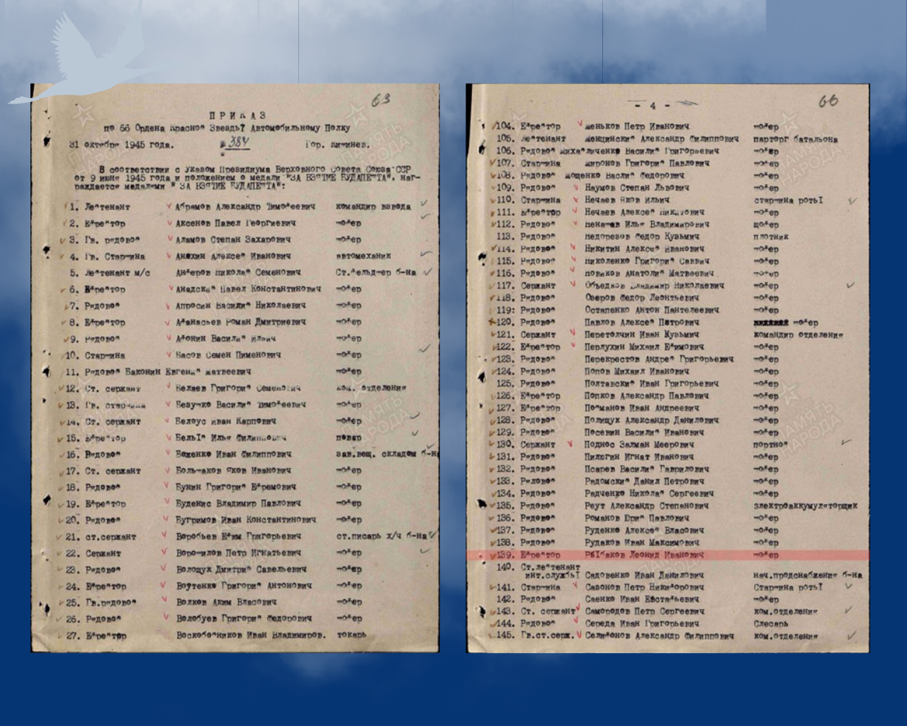 -медалями «За взятие Вены» и «За взятие Будапешта» (09.06.1945);